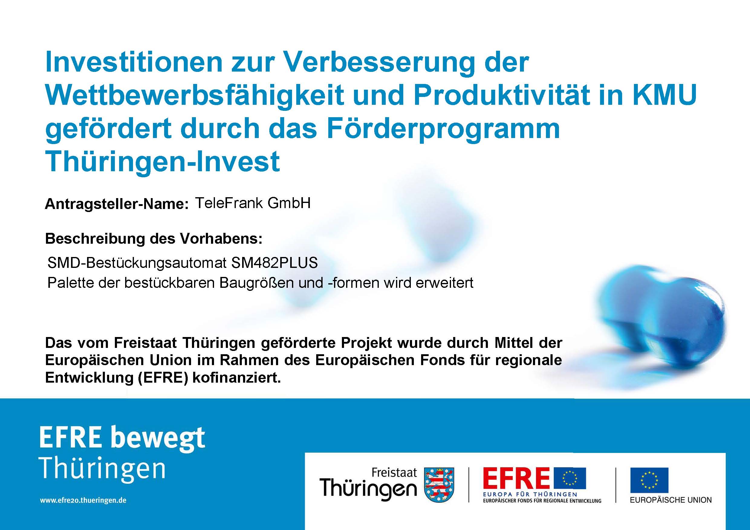 Durch diese Investition bleibt die TeleFrank GmbH wettbewerbsfähig, kann den Kunden effektive Fertigungsmöglichkeiten anbieten und damit auch den Standort und die Arbeitsplätze sichern.